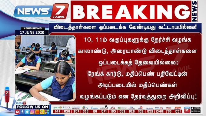 “10, 11-ம் வகுப்புகளுக்கு தேர்ச்சி வழங்க காலாண்டு, அரையாண்டு விடைத்தாள்களை ஒப்படைக்கத் தேவையில்லை” விடைத்தாள்களை பராமரிக்காத பள்ளிகள் மீது எவ்வித நடவடிக்கையும் எடுக்கப்படாது என தேர்வுத்துறை அறிவிப்பு!