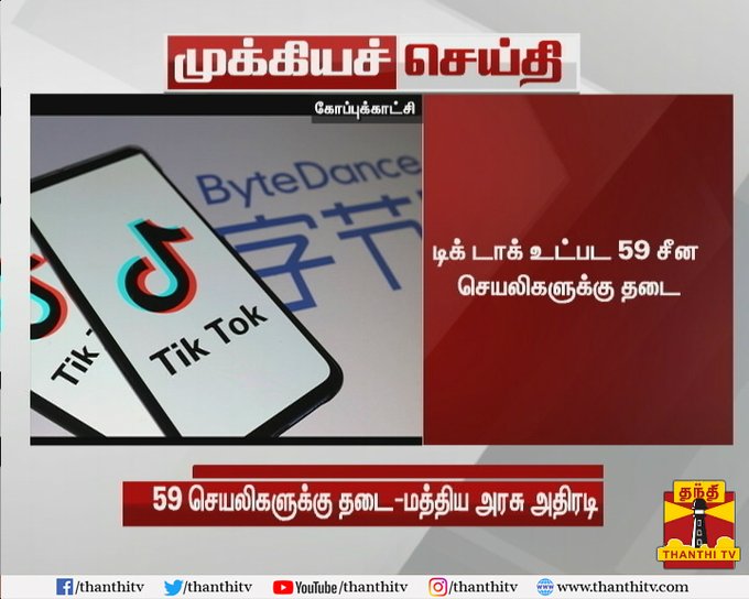 /#BREAKING | டிக் டாக் உட்பட 59 சீன செயலிகளுக்கு தடை * மத்திய அரசு அதிரடி நடவடிக்கை * டிக் டாக், ஷேர் இட், ஹலோ, லைக், யூசி பிரவுசர், வி-சாட், யூ-கேம், உள்ளிட்ட 59 செயலிகளுக்குத் தடை